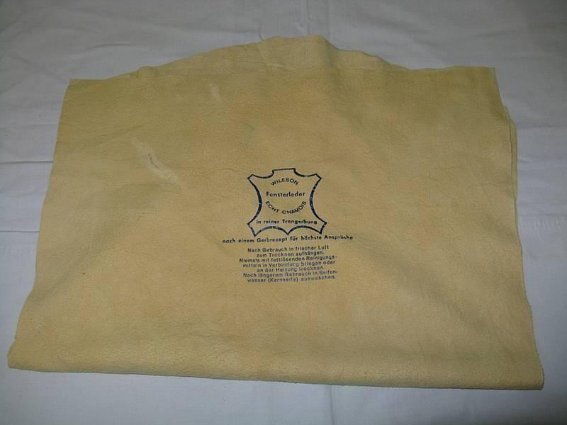 Pravá kůže na mytí, nezanechává šmouhy a výtečně saje vodu. Určeno k čištění skel, zrcátek, na lakované, chromované a plastové části, k osušení kapek…