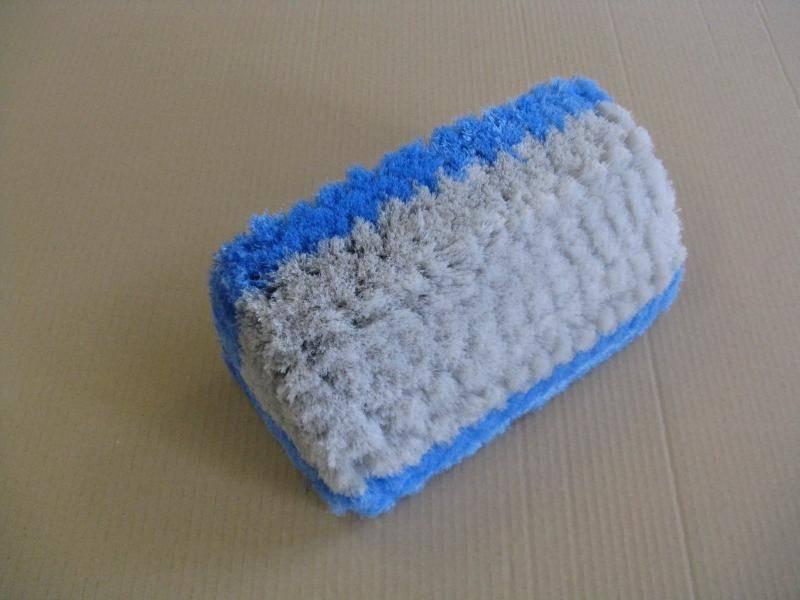 Hranatý třístranný průtokový kartáč na mytí vozů, velmi jemný v modro-šedém provedení.