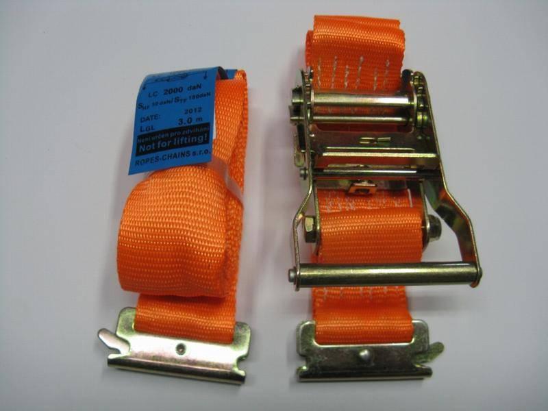 Popruh s ráčnou a úchyty do mrazáku šíře 50 mm pro maxinální upevnění nákladu 2000 kg.