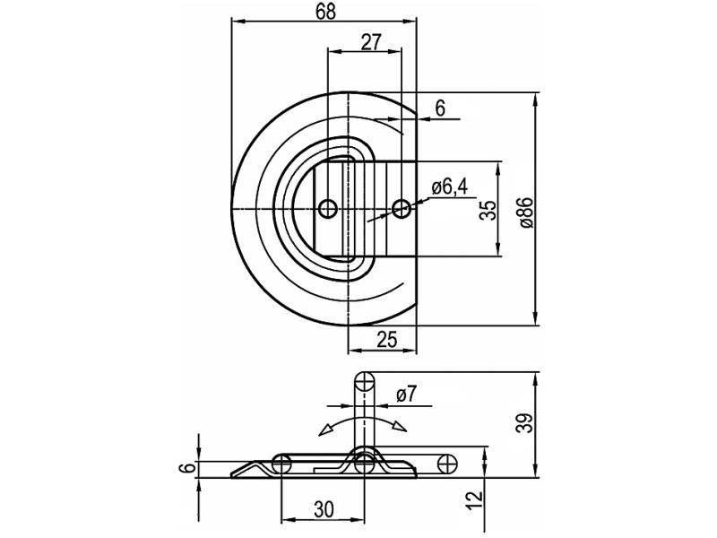 Oko kotvící na podlahu pro upoutání až 750 kg Vhodné pro přívěsné vozíky. Spojovací materiál není součástí dodávky kotvící…