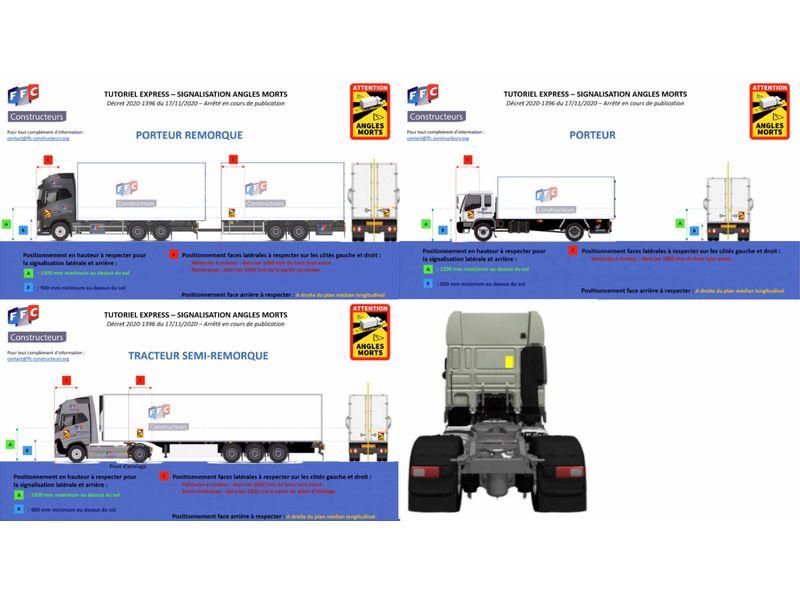 Od 1. ledna 2021 platí ve Francii povinnost pro vozidla s celkovou povolenou hmotností nad 3,5 t (nákladní i osobní), mít na vozidle vyznačené tzv. ´mrtvé úhly´, a to takovým způsobem, aby splňoval co největší viditelnost, zejména pro cyklisty, chodce a uživatele osobních dopravních prostředků a značení bylo viditelné ze stran i zezadu vozidla.