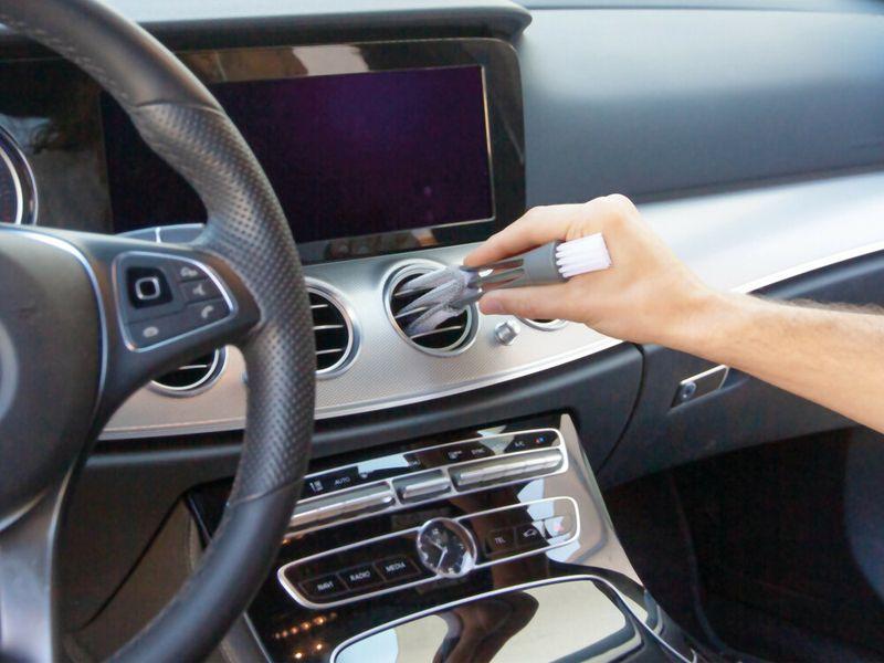 Disponuje měkkými štětinkami a utěrkou z jemné tkaniny pro dokonalé vyčištění přístrojové desky a ventilačních otvorů automobilu.