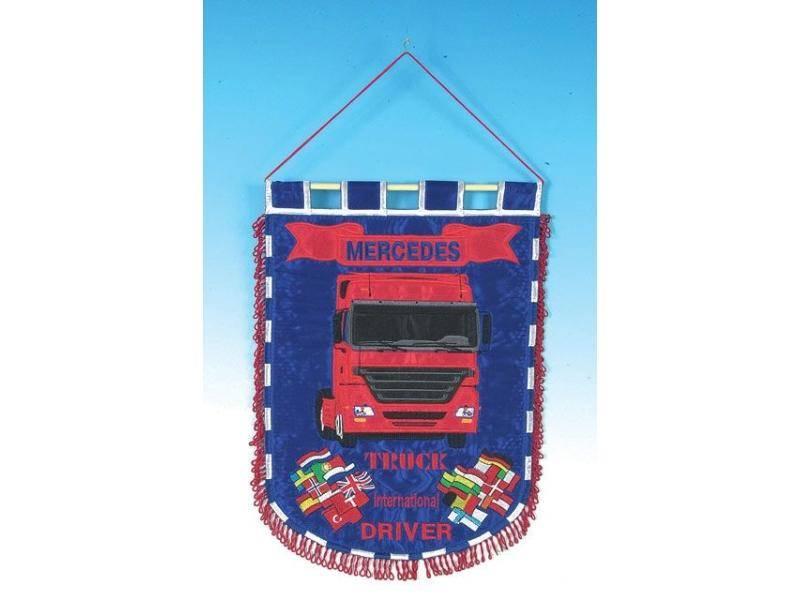 Pennon velký s nápisem MERCEDES o velikosti 23,5 x 33 cm