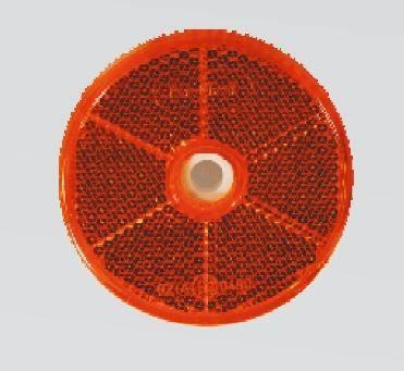 Odrazové sklo kulaté o průměru 80 mm oranžové (žlutá) samolepící fólie a upevňovací otvor 6…