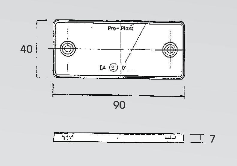 Odrazka obdélníková  90 x 40 mm bílá s otvoryOdrazka obdélníková  90 x 40 mm bílá s otvory