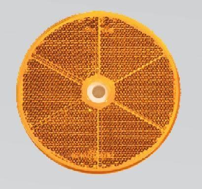 Odrazové sklo kulaté o průměru 60 mm oranžové (žlutá) samolepící fólie a upevňovací otvor 6…
