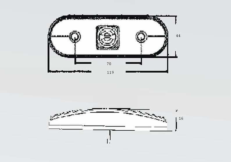 Oranžové boční švětlo LED 24V 0,55W s odrazovým sklem vestavná jednotka s kabelem 0,5 m s nácvakem P&R LED 24V 0,55W rozměr světla 110 x 38 x 24,2…
