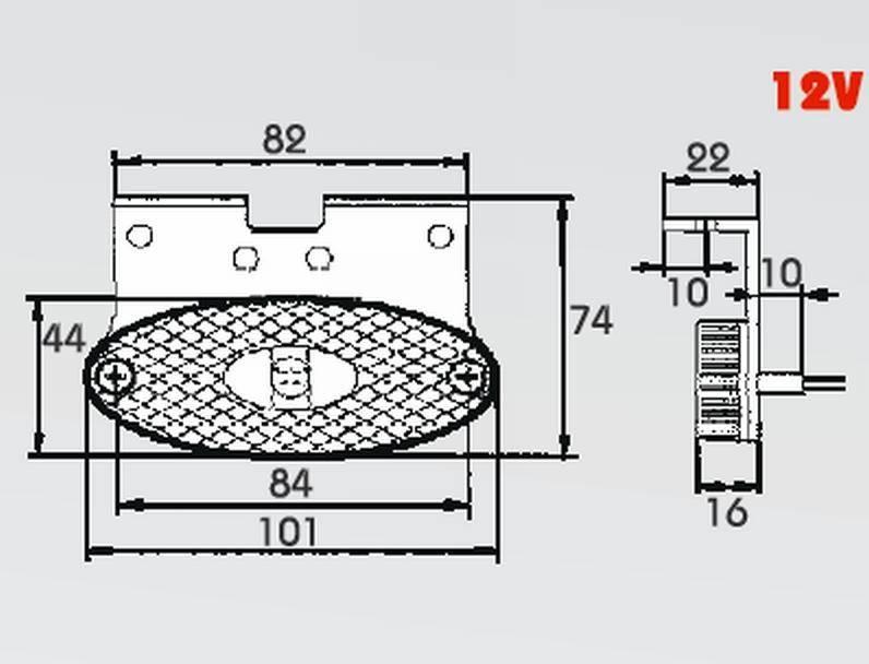 Oranžové boční světlo LED 12V 0,8W Pro-Can vestavná verze vodotěsné kabel 0,5m LED 12V 0,8W rozměr světla 70 x 22 x 18…