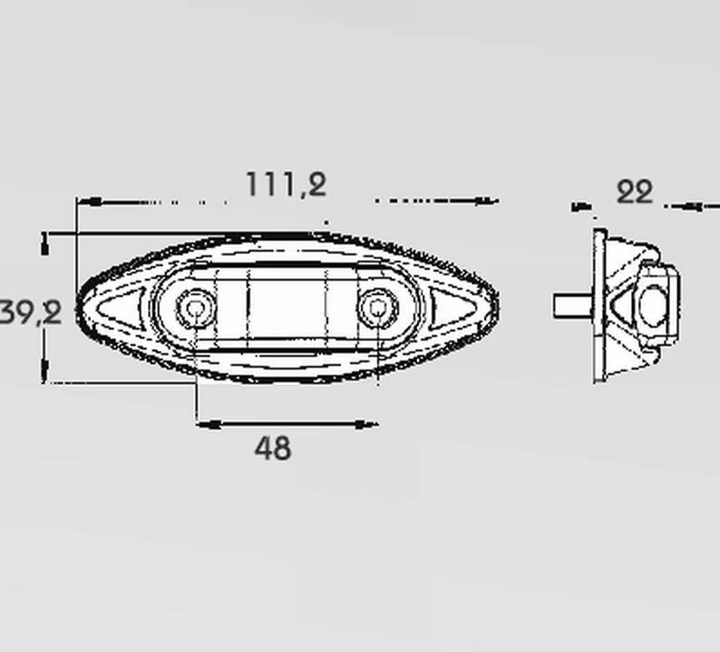 Oranžové boční světlo LED 24V 1,3W Unipoint s odrazovým sklem Unipoint vestavná verze LED 24V 1,3W rozměr světla 119 x 44 x 16 mm rozteč šroubů 70 mm Aspock…