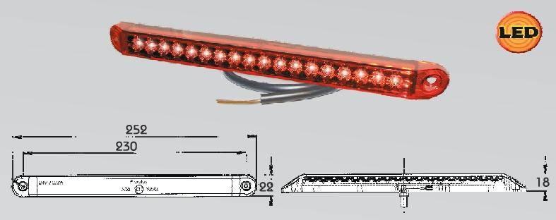 Brzdové i koncové světlo LED 24V Pro-Can XL vestavná verze vodotěsné nožnost montáže horizontálně i vertikálně kabel 0,5m LED 24V rozměr světla 252 x 22 x…