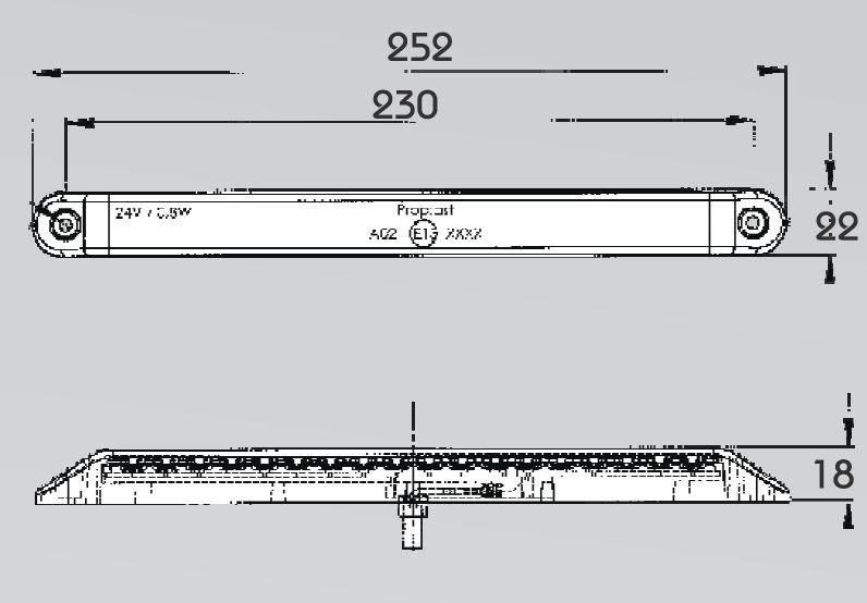 Mlhové zadní světlo LED 24V 3W Pro-Can XL vodotěsné nožnost montáže horizontálně i vertikálně kabel 0,5m LED 24V 3W rozměr světla 252 x 22 x 18…