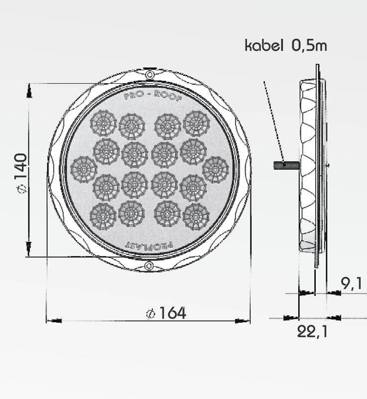 Stropní světlo LED 24V Pro-In 18 výkonných LED diod brilantní optika svítivost 150 lumenů úhel svícení 50° kabel 0,5 m LED 24V 0,8W IP67 rozměr světla…