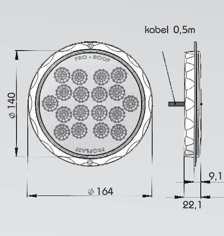 Stropní světlo LED 12V Pro-S-Roof nástavná verze 18 výkonných LED diod brilantní optika svítivost 500 lumenů úhel svícení 140° kabel 0,5 m LED 12V…