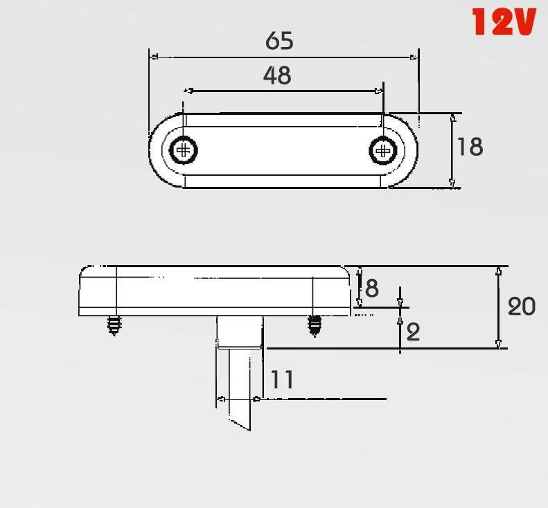 Oranžové boční světlo LED 12V 0,8W Pro-Slim vestavná verze provedení oranžové vodotěsné kabel 0,5m LED 12V 0,8W rozměr světla 65 x 18 x 10…