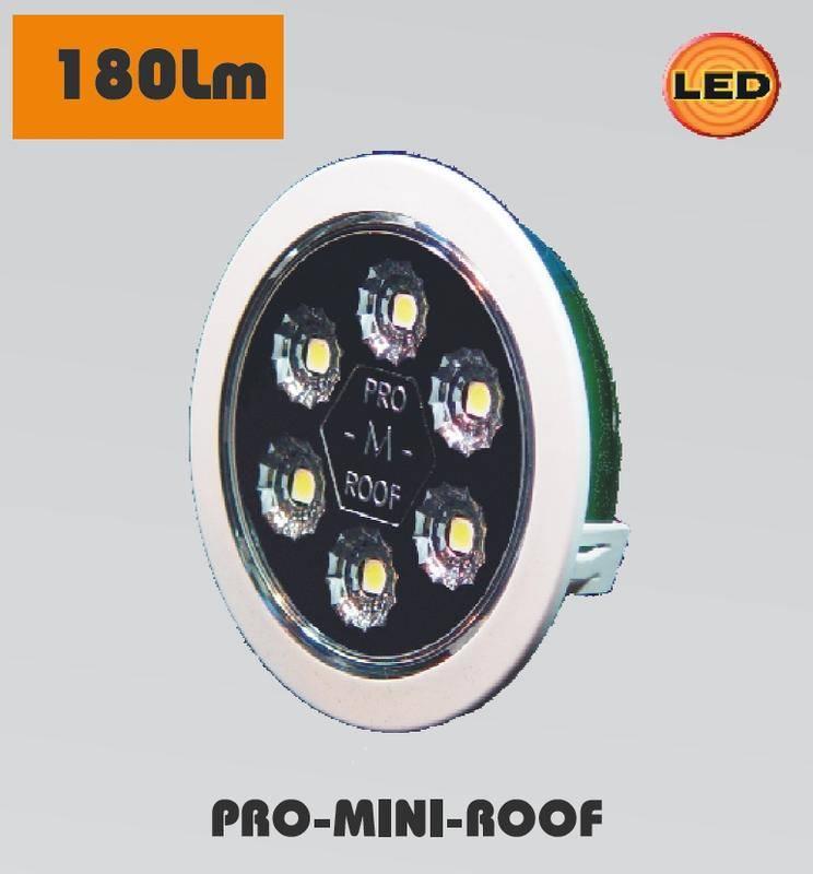 Stropní světlo LED 24V Pro-Roof vestavná verze 18 výkonných LED diod brilantní optika svítivost 180 lumenů úhel svícení 140° kabel 0,5 m LED 24V…