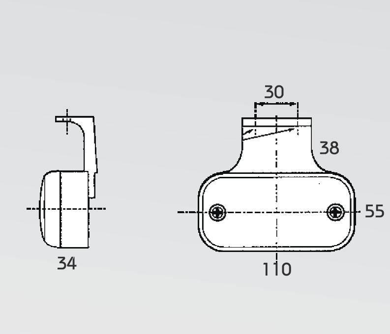 Oranžové boční světlo žárovkové 12 i 24V s odrazovým sklem s úhlovým držákem žárovka 12V 5W W2,1x9,5d (W5W) žárovka 24V 5W W2,1x9,5d (W5W) rozměr světla 110…