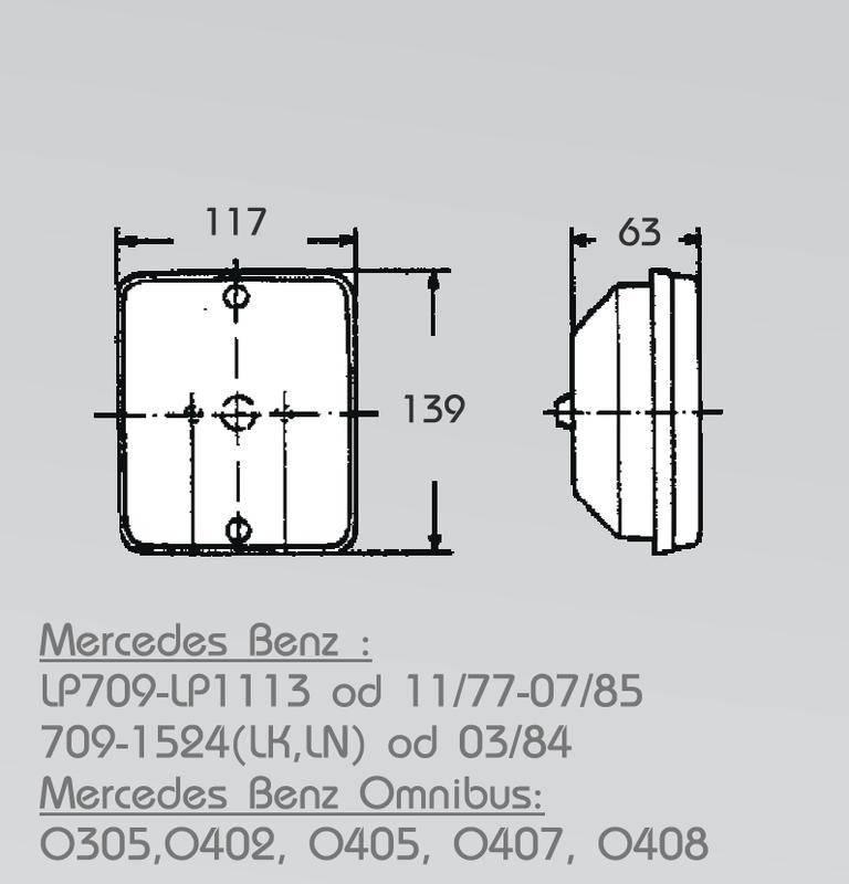 Mlhové zadní světlo 75 x 65 mm 12 i 24V žárovka 12V BA15s P21W žárovka 24V BA15s P21W rozměr světla 75 x 65 x 56…