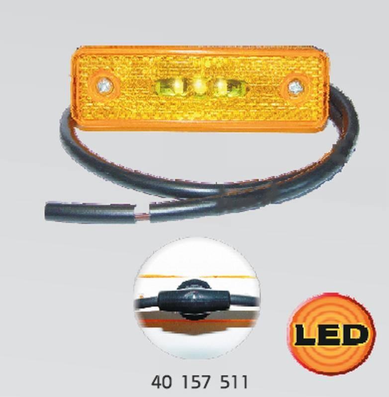 Oranžové boční světlo LED 24V 1W s odrazovýn sklem s odrazovým sklem kabelové připojení rovné v hotmelt technologii kabel 0,5 m LED 24V 1W rozměr světla 120 x 45…