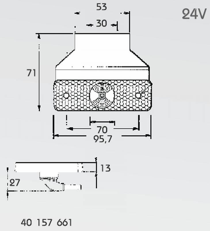 Oranžové boční švětlo LED 24V 0,55W s odrazovým sklem vestavná jednotka s kabelem 0,5 m s nácvakem P&R LED 24V 0,55W rozměr světla 110 x 38 x 24,2…