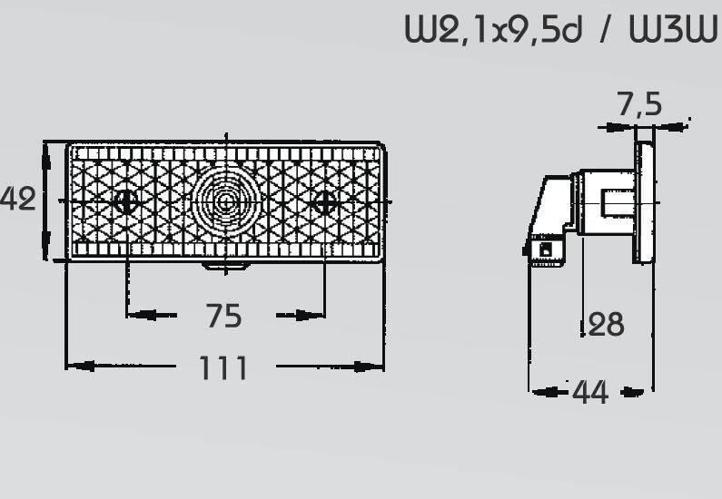 Oranžové boční světlo žárovkové 12 i 24V s odrazovým sklem s úhlovým držákem žárovka 12V 5W W2,1x9,5d (W5W) žárovka 24V 5W W2,1x9,5d (W5W) rozměr světla 110…
