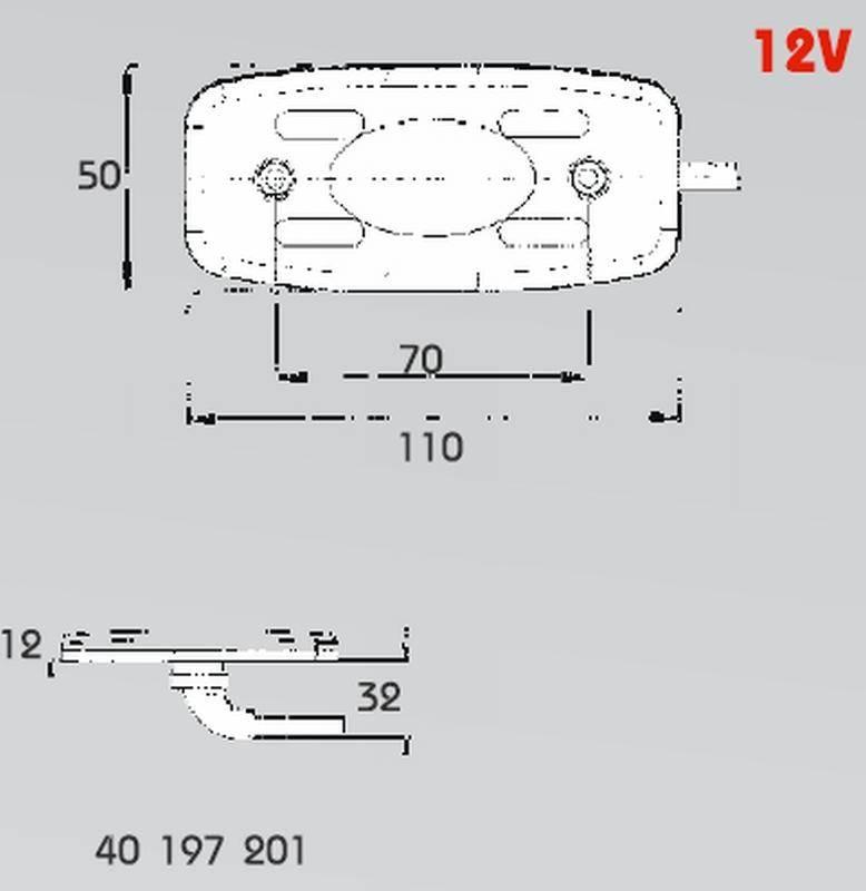 Oranžové boční světlo LED 12V 0,4W s odrazovým sklem vestavná verze v hotmelt technice vodotěsné kabel 0,5m LED 12V 0,4W rozměr světla 95 x 31 x 7,5…