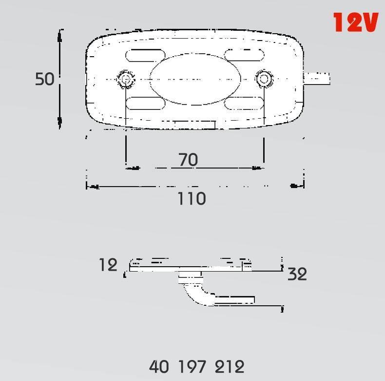 Červené obrysové koncové světlo LED 12V 0,4W Pro-Can kabel 0,5m vodotěsné LED 12V 0,4W rozměr 70 x 22 x 18…
