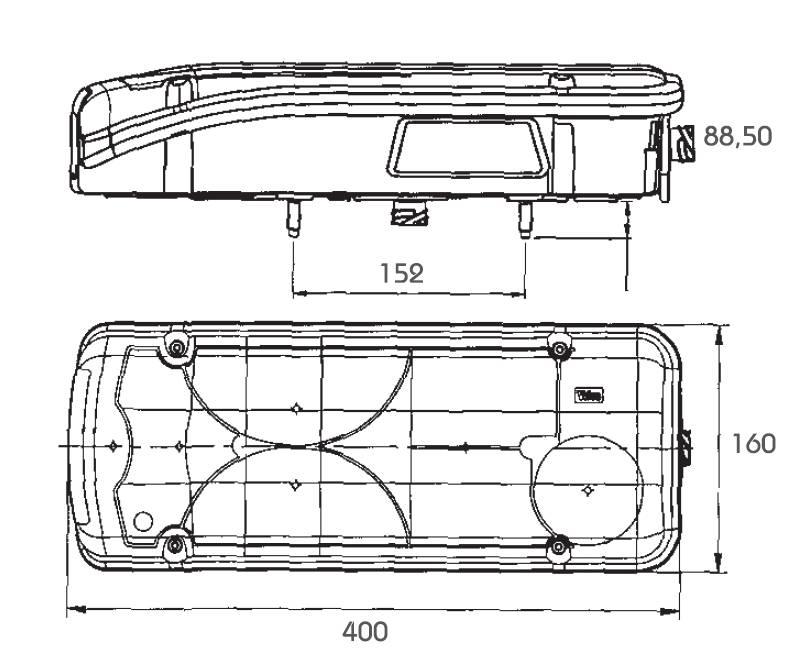 Zadní skupinová svítilna s boční konektorovou přípojkou 1,5 AMP