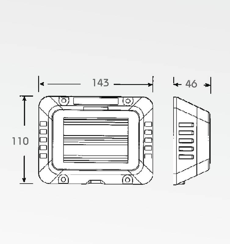 rozměr světla 143 x 110 x 46 mm