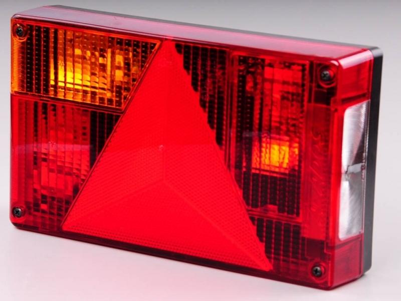 Zadní skupinová svítilna na přívěsné vozíky zn. AGADOS. Zadní svítilna se skládá z: koncové, brzdové, mlhové a směrové svítilny + výstražný trojúhelník…