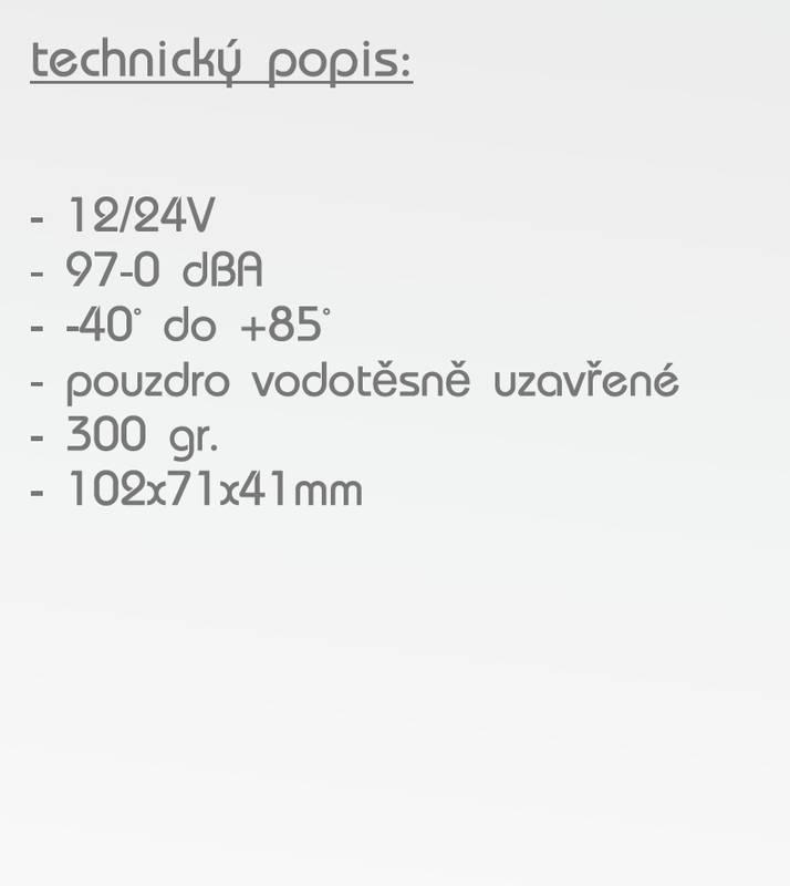 Výstražný systém zpětné jízdy 12 - 36V Pro-Heavyalarm extrémní hlučnost možnost montáže - nástavná montáž technický popis : - 12 - 36V - výstražný…
