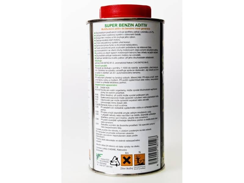 Aditivum do benzinu SUPER BENZIN ADITIV snižuje spotřebu o 5-7 % díky obsažené mazivostní přísadě.