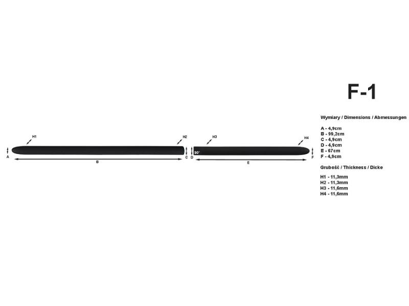 Černé ochranné lišty bočních dveří od polského výrobce RIDER jsou vyrobeny z odolného černého gumoplastu, velmi dobře se montují, nepotřebují speciální údržbu, pouze umýt nebo ošetřit přípravkem na plasty.