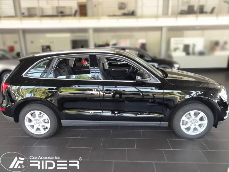 Ochranné černé gumoplastové lišty bočních dveří od výrobce RIDER pro vůz Audi Q5, 5 dveří, od roku výroby 2011 ->, sada čtyř kusů lišt dveří, dva kusy na přední dveře a dva kusy na zadní dveře vše v černém provedení.