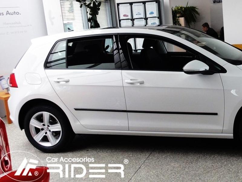 Ochranné černé gumoplastové lišty bočních dveří od výrobce RIDER pro vůz Volkswagen Golf VII, od roku výroby 2011 ->, sada čtyř kusů lišt dveří, dva kusy na přední dveře a dva kusy na zadní dveře vše v černém provedení.