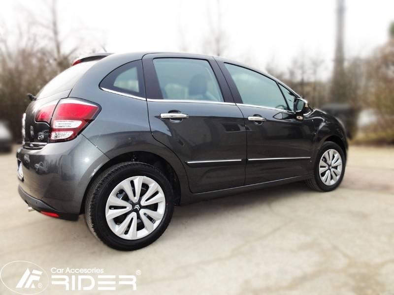 Ochranné černé gumoplastové lišty bočních dveří od výrobce RIDER pro vůz Citroen C3, 5 dveří, od roku výroby 2011 ->, sada čtyř kusů lišt dveří, dva kusy na přední dveře a dva kusy na zadní dveře vše v černém provedení.
