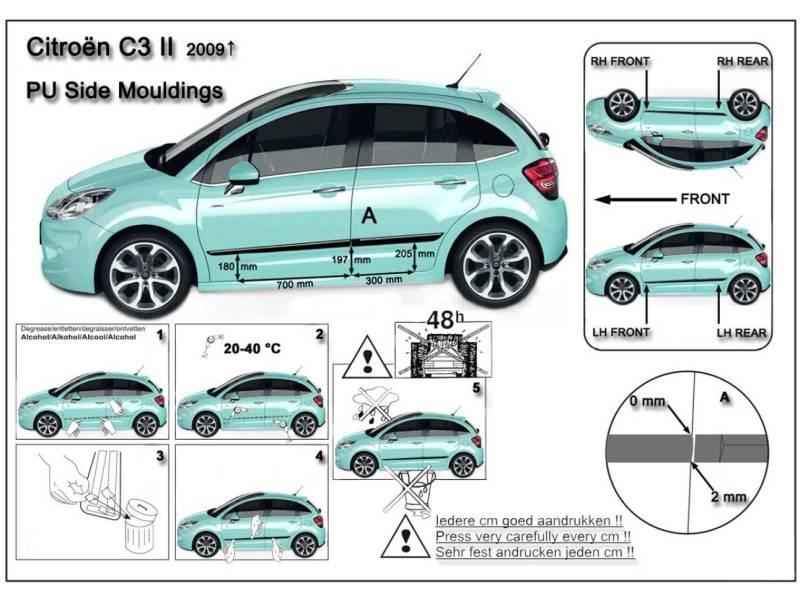 Lišty dveří Citroen C3, 2011 ->, 5 dveří