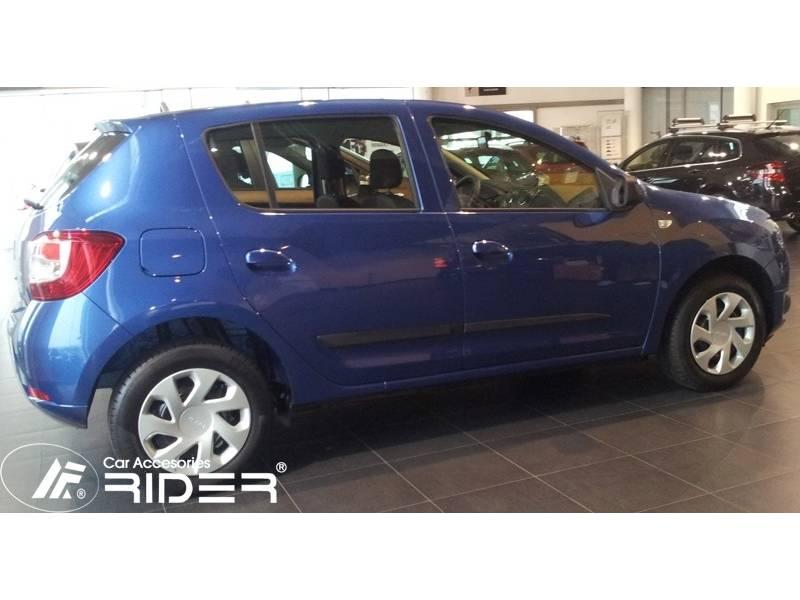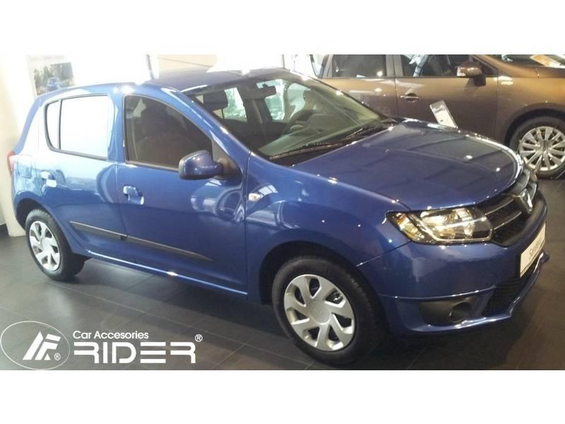 Ochranné černé gumoplastové lišty bočních dveří od výrobce RIDER pro vůz Dacia Sandero, 5 dveří, od roku výroby 2013 ->, sada čtyř kusů lišt dveří, dva kusy na přední dveře a dva kusy na zadní dveře vše v černém provedení.
