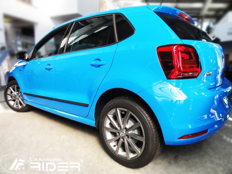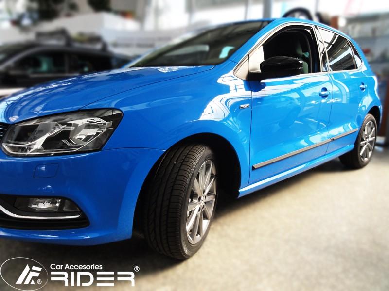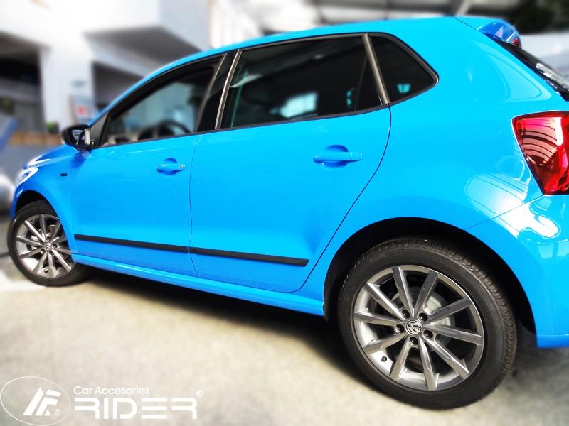 Ochranné černé gumoplastové lišty bočních dveří od výrobce RIDER pro vůz Volkswagen Polo, rok výroby 2010 - 2013, sada čtyř kusů lišt dveří, dva kusy na přední…