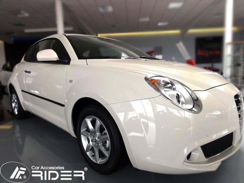Ochranné černé gumoplastové lišty bočních dveří od výrobce RIDER pro vůz Alfa Romeo Mito, 3 dveře, od roku výroby 2008 ->, sada čtyř kusů lišt dveří, dva kusy na přední dveře a dva kusy na zadní blatník vše v černém provedení.