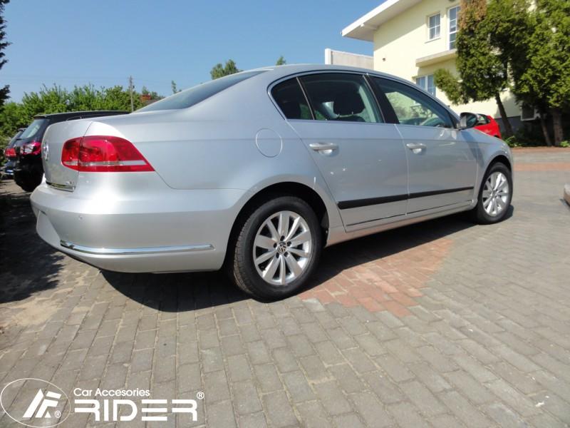 Ochranné černé gumoplastové lišty bočních dveří od výrobce RIDER pro vůz Volkswagen Passat B7 sedan i combi, rok výroby 2010 - 2014, sada čtyř kusů lišt dveří, dva kusy na přední dveře a dva kusy na zadní dveře vše v černém provedení.
