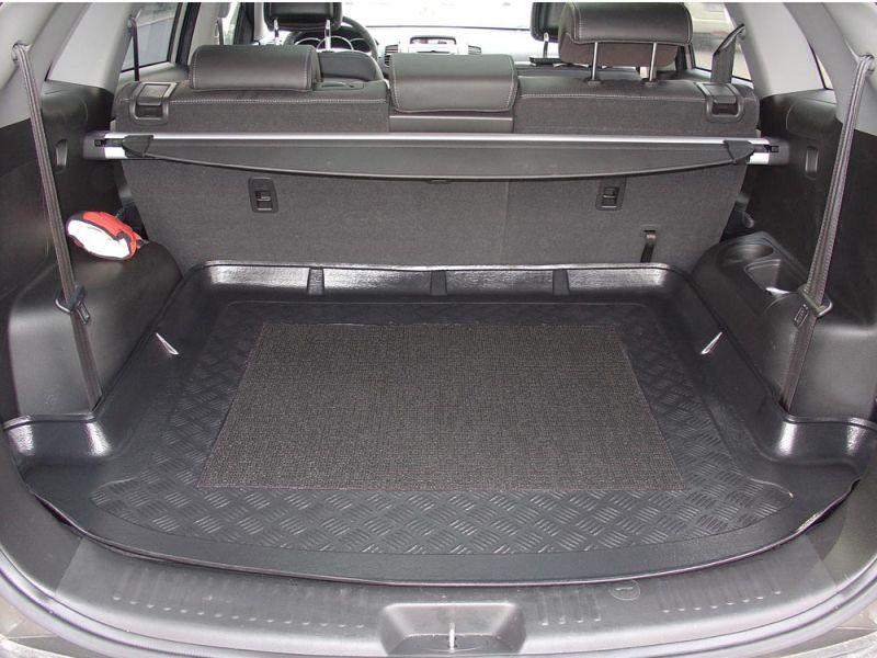 Gumoplastová vana Standart do zavazadlového prostoru vozu KIA Sorento II SUV, 5 dveří, rok výroby 2009 - 01.2015 pro 7 míst kdy je třetí řada stažena v černém provedení s protiskluzovým potahem ve středu kufru o velikosti zhruba dvě třetiny povrchu vany do firmy ARISTAR, která přesně kopíruje kufr Vašeho vozu.