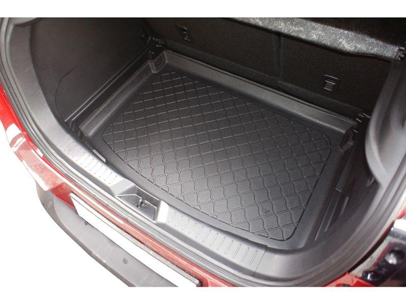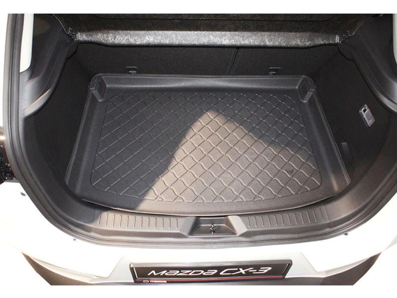 Gumoplastová vana Guardliner do zavazadlového prostoru vozu Mazda CX 3 i po faceliftu roku 2021, SUV, 5 dveří, roku výroby 06.2015 - 12.2021pro horní podlahu kufru i se sebwooferem a pro spodní polohukufru bez subwooferu na výškově nastavitelnou podlahu zavazadlového prostoru v černém provedení s protiskluzovou úpravou celého povrchu do firmy ARISTAR, která přesně kopíruje kufr Vašeho vozu.