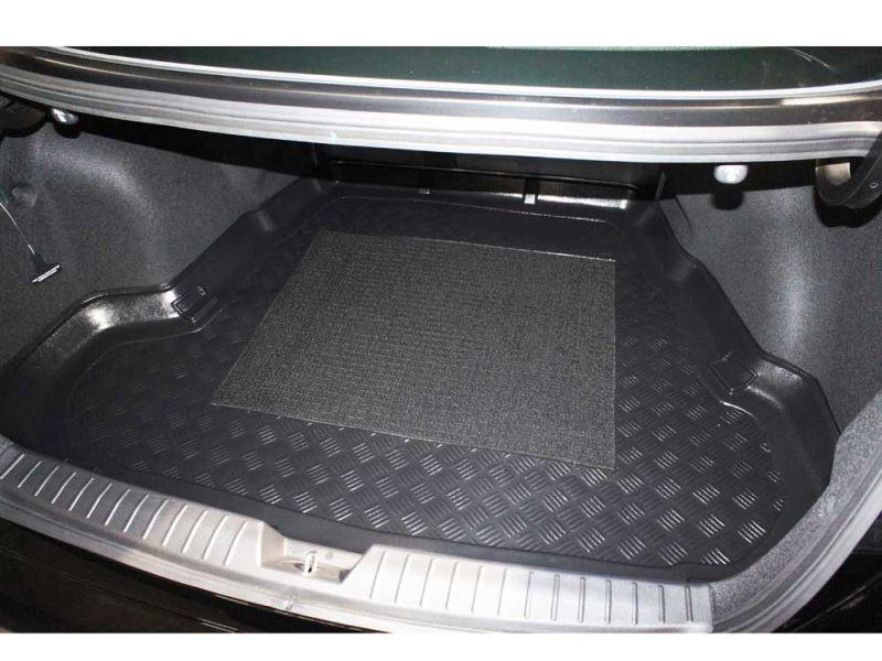 Gumoplastová vana Standart do zavazadlového prostoru vozu KIA Careto sedan, 4 dveře, rok výroby 2004 - 2009 v černém provedení s protiskluzovým potahem ve středu kufru o…