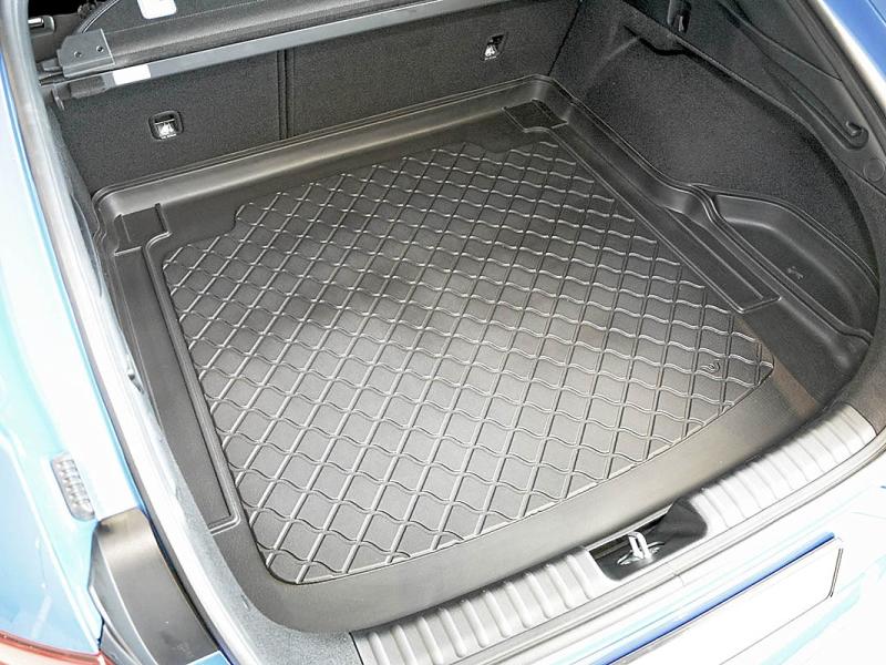 Gumoplastová vana Guardliner do zavazadlového prostoru vozu KIA ProCeed Shooting Brake Combi, 5 dveří, od roku výroby 12.2018 –> i po faceliftu roku 2021 včetně modelů s kolejnicemi, pravé křídlo odnímatelné pro další reproduktory (kratší křídlo) v černém provedení s protiskluzovou úpravou celého povrchu do firmy ARISTAR, která přesně kopíruje kufr Vašeho vozu.
