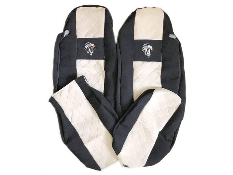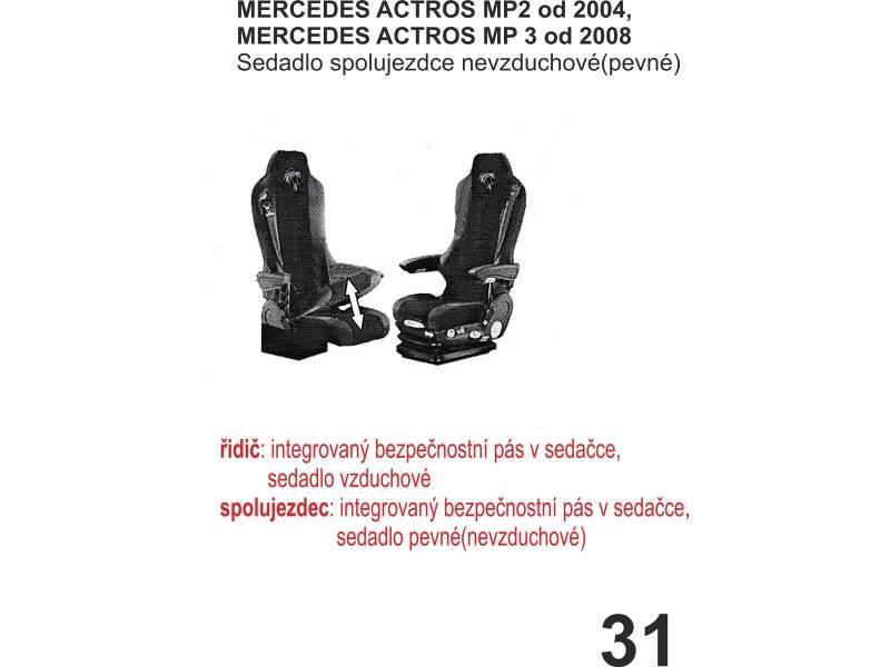 Autopotahy na sedačky nákladních automobilů vyrobené z pevnějšího materiálu menšestru, přesně kopírující sedadla vozů MERCEDES Actros MPII, MPIII rok výroby 2004 - 2011, sedadlo řidiče vzduchové, bezpečnostní pás integrovaný v sedačce, sedadlo spolujezdce pevné, bezpečnostní pás integrovaný v sedačce, potah číslo 131.