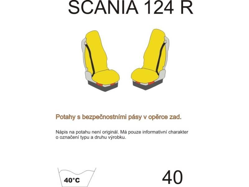 Autopotahy na sedačky nákladních automobilů vyrobené z pevnějšího materiálu menšestru, přesně kopírující sedadla vozů SCANIA R rok výroby 2004 - 2013, stejná sedadla s integrovanými opěrkami hlavy v sedačce, bezpečnostní pásy v sedačce, potah číslo 40.