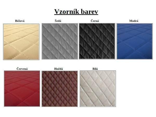 Tyto přesné koberce se vyrábějí vždy na daný typ vozu z kvalitní koženky, která je prošitá do čtverců a obšita lemovkouv. Koženka je dostupná v sedmi různých barvách a to béžová, šedá, černá, modrá, červená, hnědá a bílá