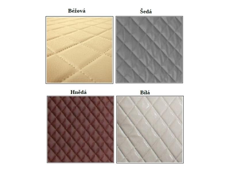 Tyto přesné koberce se vyrábějí vždy na daný typ vozu z kvalitní koženky, která je prošitá do čtverců a obšita lemovkouv. Koženka je dostupná v sedmi různých barvách a to béžová, šedá, černá, modrá, červená, hnědá a bílá