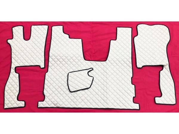 Autokoberec pro nákladní vozy ušité z kvalitní koženky prošité do čtverců a jsou určeny na vůz Scania R, od roku výroby 2017 ->, pro výbavu s tunelem a vzduchovým sedadlem spolujezdce, sada koberců se skládá ze tří kusů.