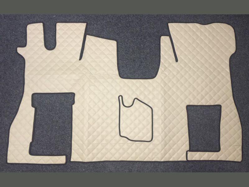Autokoberec pro nákladní vozy ušité z kvalitní koženky prošité do čtverců a jsou určeny na vůz Scania R, od roku výroby 2017 ->, pro výbavu s rovnou podlahou a pevný nevzduchovým sedadlem spolujezdce, koberec je vcelku.